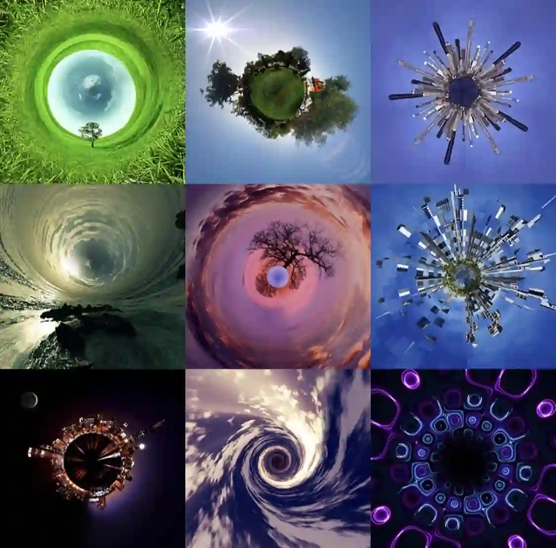 其实这种后期形式是有名字的,我们叫做极坐标调整。而更有意思的事,画面中的有一些因素是应用应用内提供的内容,然后我们再后期添加进去获得的。