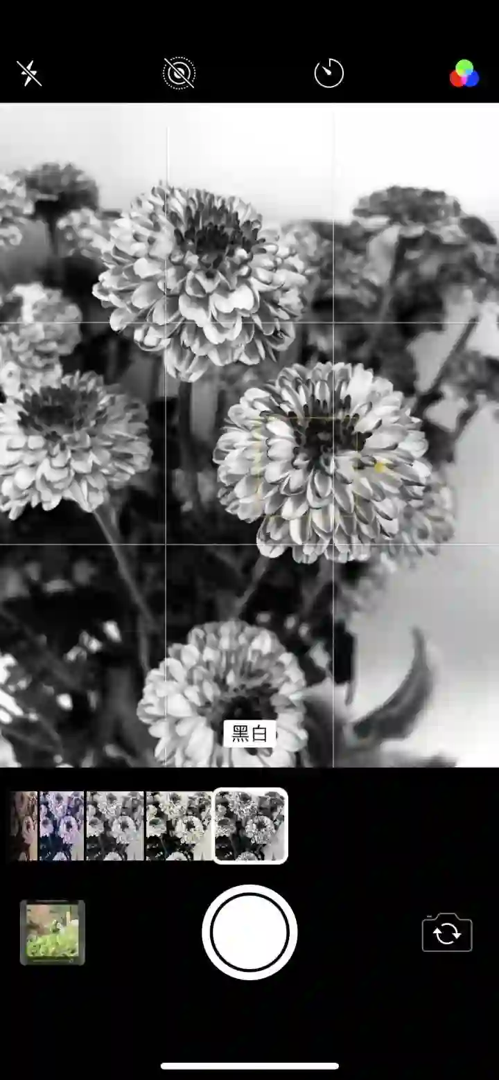 这个时候你就会发现,你眼里的世界已经全部去掉了色彩,变为了黑白世界,这个时候你再去拍照就可以完全寻找到自己想要的黑白质感的照片。换句话说,这种实时滤镜它不仅仅是可以帮你节省时间,更重要的是这是一种让你改变一个视角和思路去观看你所要拍摄对象的一个手段。