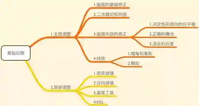 接下来,我将会首先用一张图来表达,基础后期一般都包含哪些内容,然后再展示常用的后期应用是如何调节它们的: