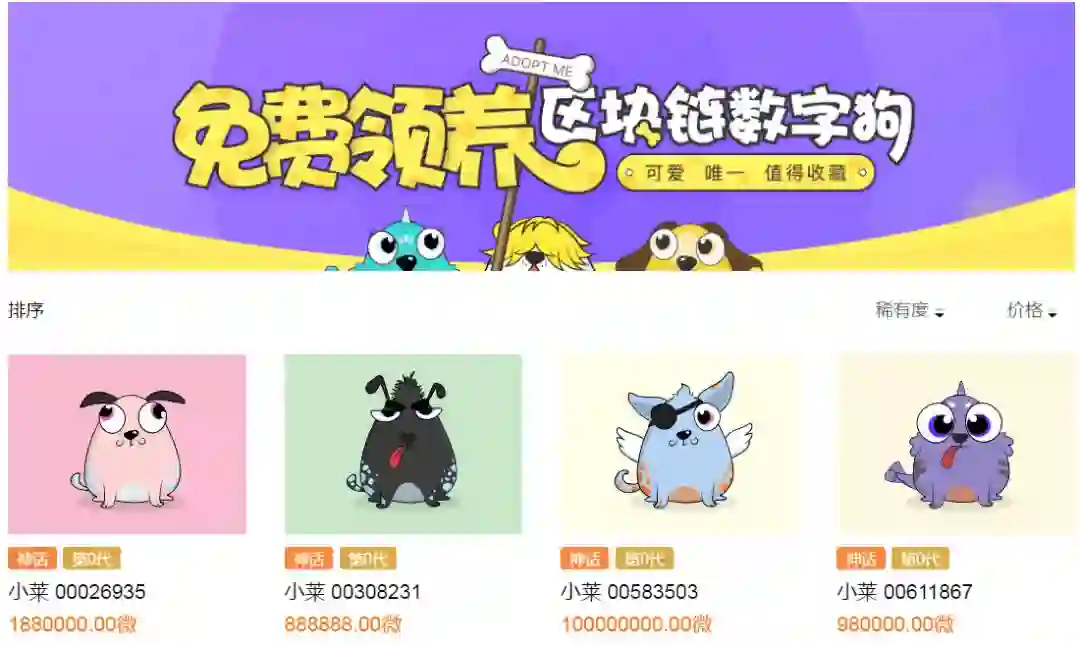 它们有的在测试娱乐化方式,吸引普通用户去使用他们的产品。2月4日,百度推出区块链游戏项目“莱茨狗”,与大火的以太坊的养猫游戏CryptoKitties类似,用户可以养自己的数字狗,并获得一定奖励,前提是需要下载百度钱包。目前这个项目还在内测阶段,但已经有不少领养教程出现。
