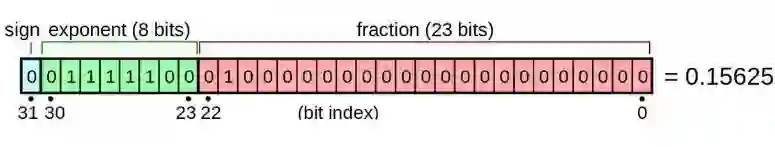 计算机使用的数字并不是完美的数学对象,而是使用有限个比特的近似表示。浮点数通常被计算机用于表示数学对象。每一个浮点数由小数和指数的组合构成。在 IEEE 的 float32 标准中,小数分配了 23 个比特,指数分配了 8 个比特,还有一个比特是表示正负的符号位 sign。