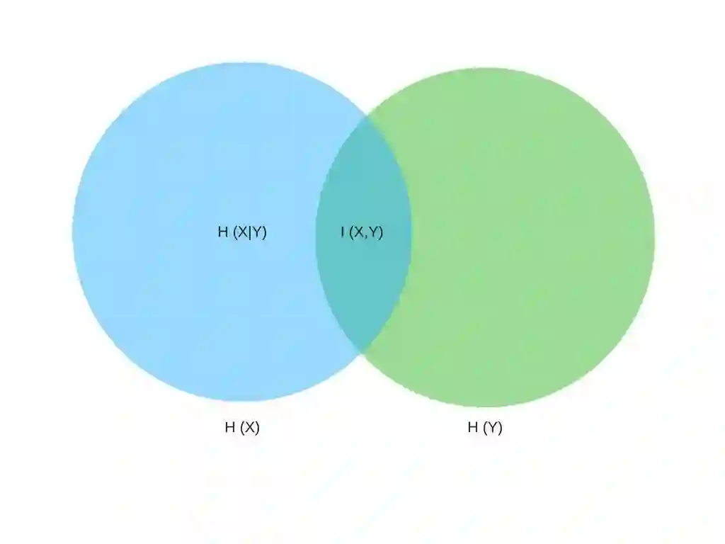 如上所示为互信息的表达式,其中 H 代表信息熵,H(X) 代表变量 X 的信息熵。而 H(X|Y) 表示给定 Y 时 X 的条件熵,或 H(X|Y) 表明了在 Y 已知的情况下从 X 中移除的不确定性。