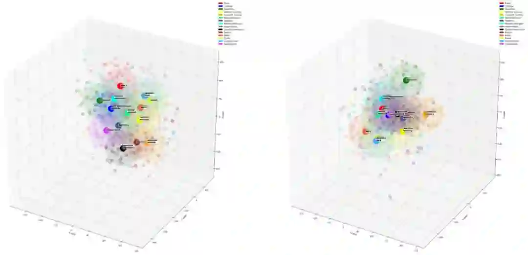 这些隐层通常有几百到几千不等的维度。受人类视觉系统进化本身所限,我们无法可视化超过 3 维的内容,因此我们使用了降维技术进行可视化。