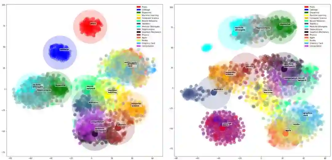 用最终的语言模型对每一个上述单词找到 N 个同义词(二维中 N=200,三维中 N=50)