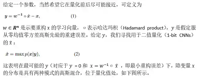 训练1-bit CNNs有三个步骤:正向传递,反向传递和通过梯度更新参数。二值化的权重仅在前向(inference)和梯度计算时考虑。更新参数后,获得了全精度权重。如何将其连接是确定网络性能的关键。作者在概率框架中对其进行求解,以获得最佳的1-bit CNNs。