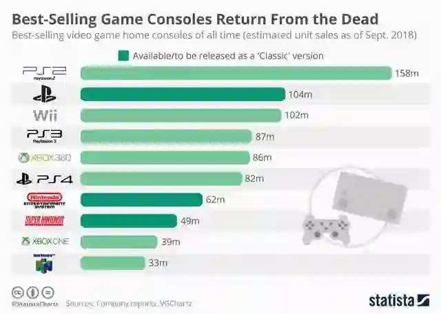 六年后,后续机种 PlayStation 2上市。至今为止,PlayStation 2 仍是销量最高的家用游戏机,在长达12年的销售期内一共卖出了1亿5768万部。