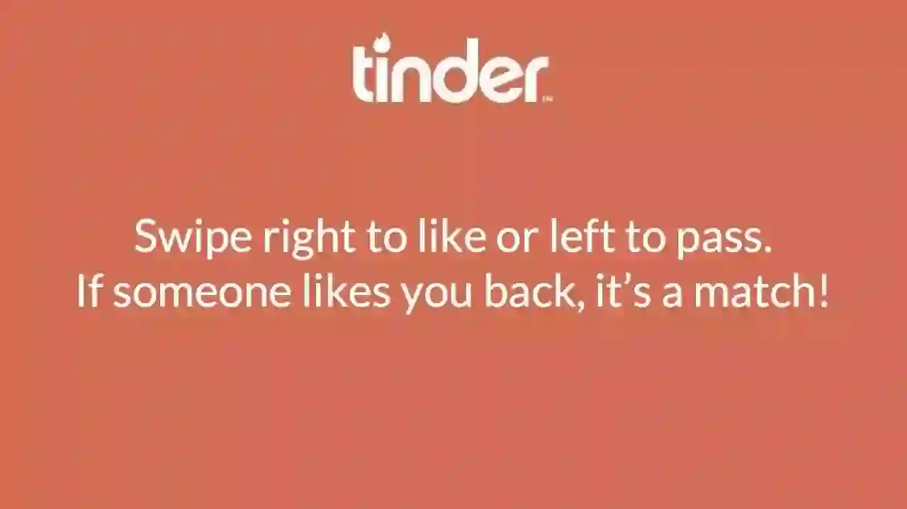 Tinder,向左滑动「喜欢」,向右滑动「过」。如果有人也喜欢你,匹配成功!