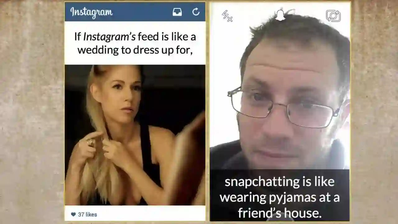 如果说 Instagram 的信息源像婚礼上的正装出席,那么 Snapchat 就像是在朋友家里穿睡衣。