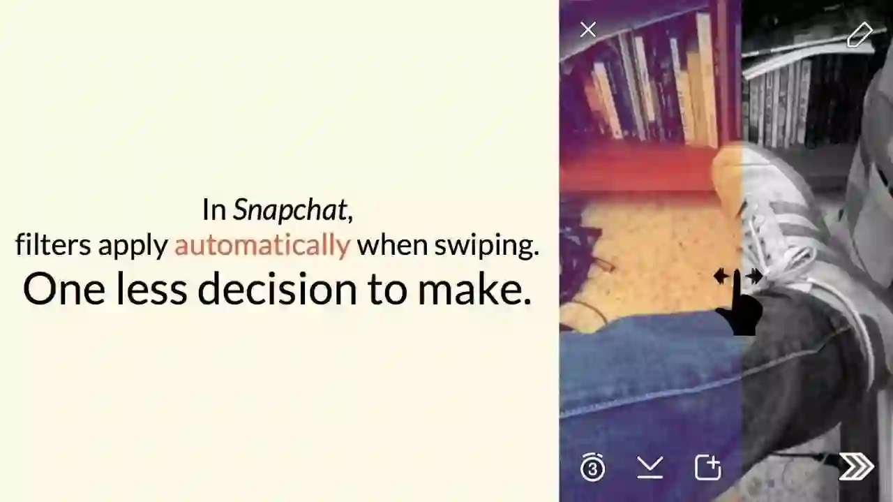 在 Snapchat 上,你只要轻轻一划,滤镜自动匹配。