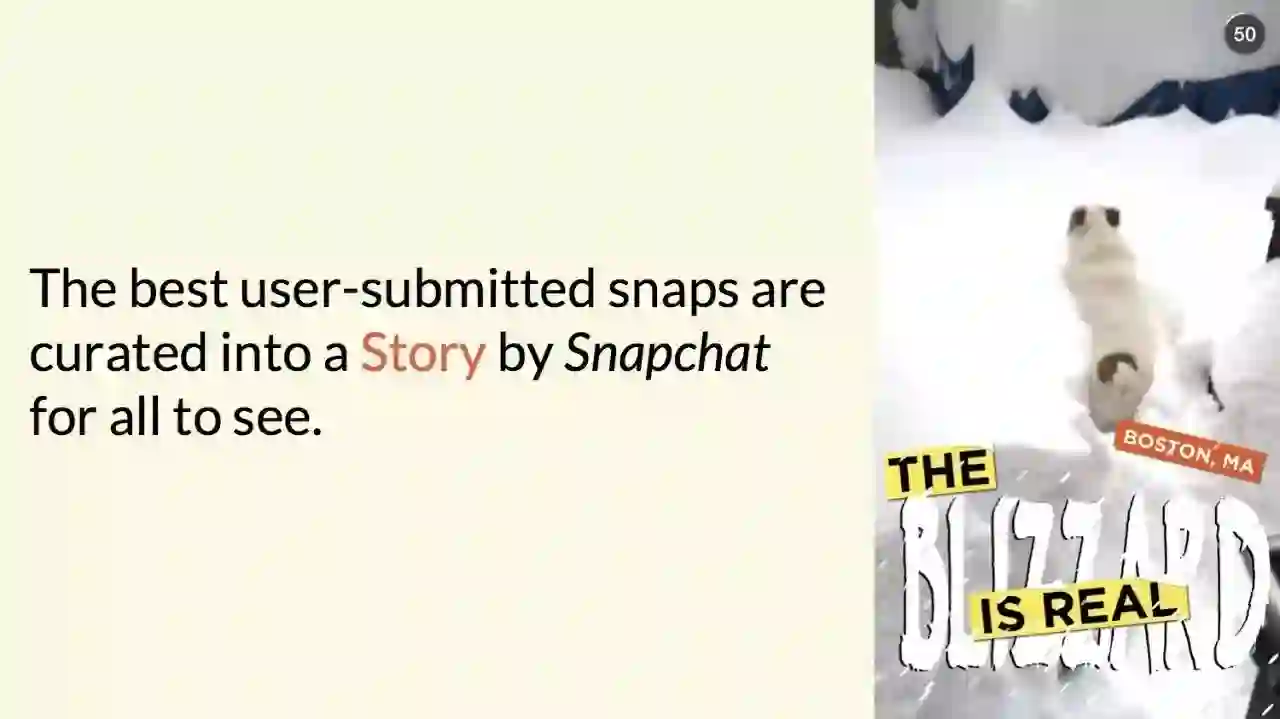 Snapchat 会将最佳的用户照片处理,变成故事,让所有人能看到。