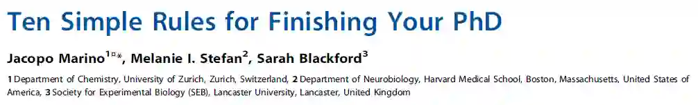 【导读】读博过程中最忐忑的莫过于最后一年了,这一年需要发论文、写毕业论文、找工作还有实验室的一些琐碎事情。如何合理利用这一年时间,博士得以顺利毕业是很多博士生关心的问题。这篇文章是哈佛大学等知名大学的教授撰写的,阐述了博士顺利毕业的十条简单规则(Ten Simple Rules for Finishing Your PhD),希望帮助到有需要的同学。