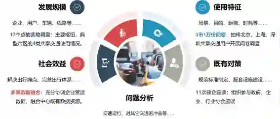 目前全行业在共享交通实际应用层面的基础研究都很薄弱,能够作为应用支撑依据的研究很少,项目基于共享交通功能定位和应用场景,明确共享交通利益主体的责任与权益,从风险管控和多样化服务的角度,提出规模、安全、服务、设施和信息化等方面应对策略,,提出经营模式、补贴模式、监管考核方式等重要管理问题的政策建议。