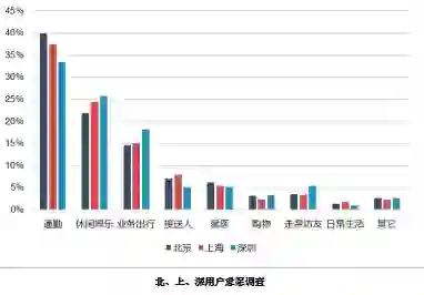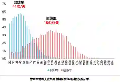 根据车牌识别系统对巡游和网约车活动的监测,专职从事网约车运营的小汽车超过5万辆,超过实际备案车辆规模;出行结构偏离预期,超过30%用于通勤通学,转移自巡游出租车客流(43%)、常规公交(21.5%)以及地铁(15%);路网压力增加,产生的道路周转量约相当于30万辆普通小汽车。