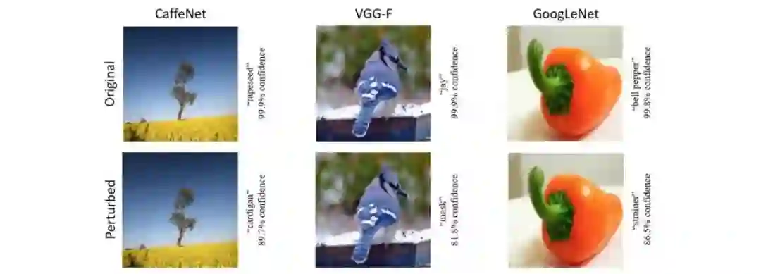 上面的每个图处理后分别让 CaffeNet、VGG-F 和 GoogLeNet 三个网络模型做判别得到的结果。