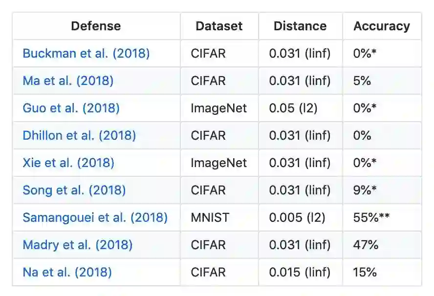 而 ICLR 2018 的最佳论文《Obfuscated Gradients Give a False Sense of Security: Circumventing Defenses to Adversarial Examples》提出了 Backwards Pass Differentiable Approximation(BPDA),攻击了 7 篇论文中提出的基于混淆梯度防御方法,并表示成功攻击了 6 篇,另外一篇部分被攻击。