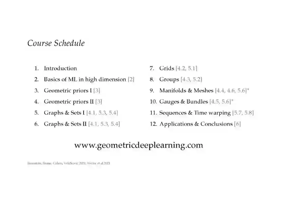 作为非洲机器智能硕士课程(AMMI 2021)的一部分,我们提供了一门关于几何深度学习(GDL100)的课程,它紧跟我们的GDL原型书的内容。我们使所有的材料和课件从这门课程公开可用,作为我们的原型书的同伴材料,以及一种方式深入到一些内容的未来迭代的书。