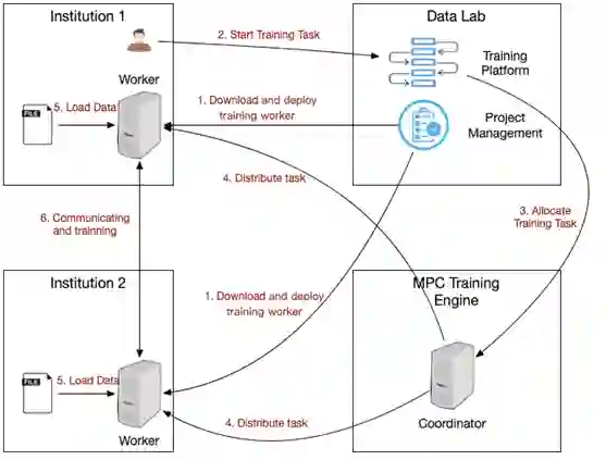 Worker 之间根据下发的训练任务,通过多方安全协议交互完成训练任务