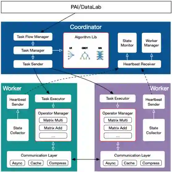 支持多种机器学习算法以及各种数据预处理算子。支持的算法包括但不限于 LR,GBDT,Xgboost,DNN,CNN,RNN,GNN 等。