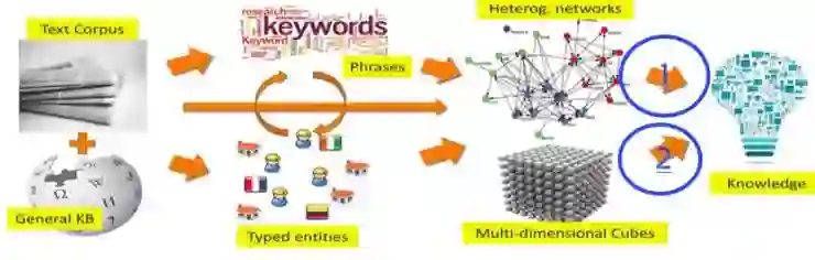 AI 科技评论按:前些日子,数据挖掘领域的巨擘韩家炜教授 [1] 在中国计算机学会(CCF)主办的第 87 期 CCF 学科前沿讲习班(CCF Advanced Disciplines Lectures,简称 CCF - ADL)[2] 做了一场精彩报告,报告题目叫做《大规模语料库的多维分析》(Multi-Dimensional Analysis of Massive Text Corpora)。[3] 笔者私以为这场报告对广大做数据挖掘的老师和学生有很大的指导意义,韩家炜在这场报告中讲述了他以及他带领的学生在过去以及未来十多年中研究方向的主线,即下面这张图: