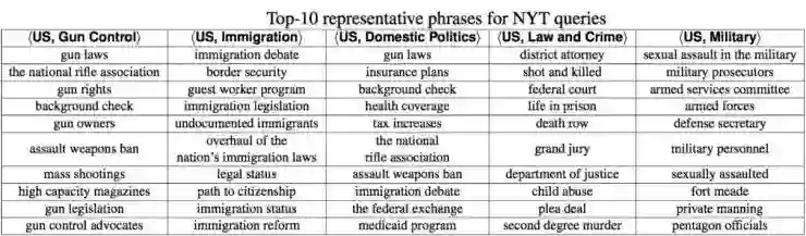 使用这种方法,韩家炜领导的小组通过 NY Times 在 2016 年的新闻很容易就挖掘出了当时美国两党辩论过程中的主要议程(例如<US, Gun Control>、<US, Immigration>等)Top 10 的关键信息。