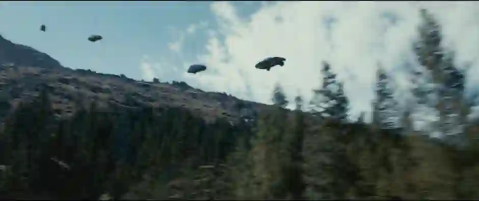 看着飞速落下的汽车,想想就非常刺激!感觉在路面上跑的再快都赶不上自由落体的速度吧,车辆通过重力加速飞快地到达地面,然后很快就拦截到反派的车队了。