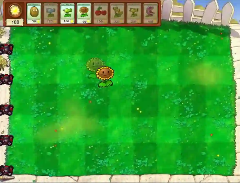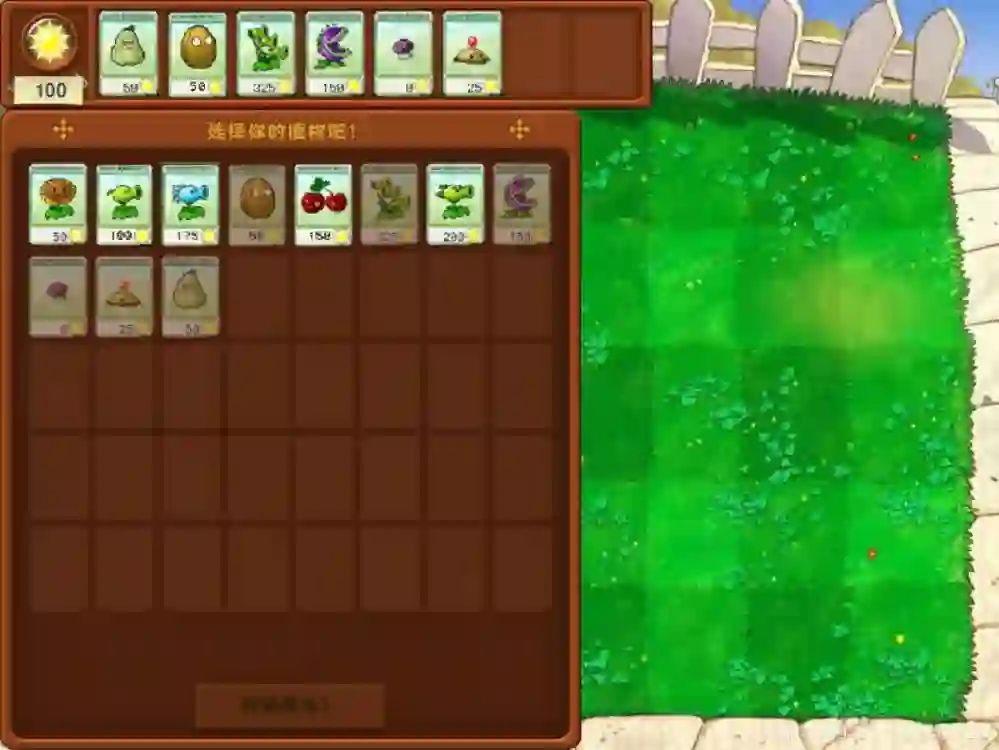 支持的植物类型:太阳花,豌豆射手,寒冰射手,坚果,樱桃炸弹。新增加植物:双重豌豆射手,三重豌豆射手,食人花 ,小喷菇,土豆地雷,倭瓜。