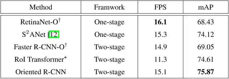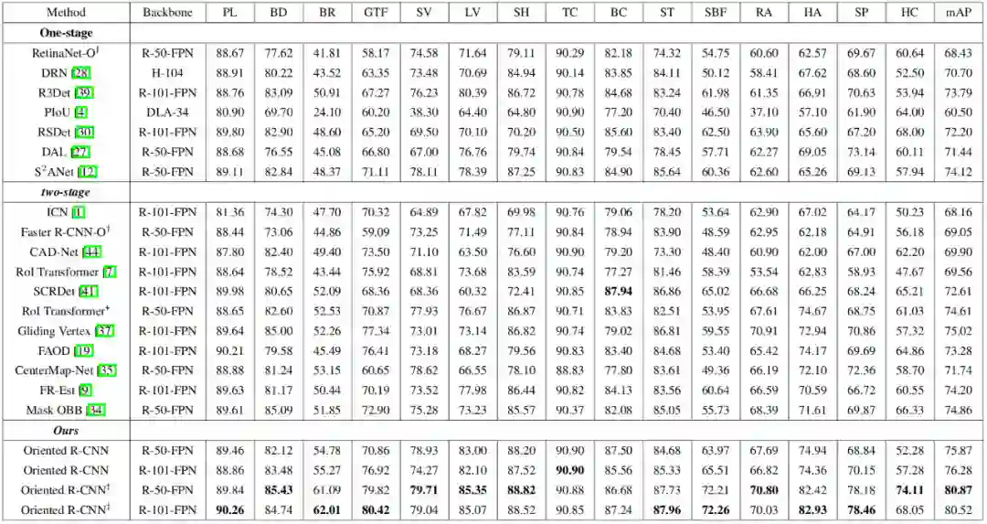 [1] Ross Girshick. Fast R-CNN. In Proceedings of the IEEE International Conference on Computer Vision, pages 1440-1448, 2015.[2] Shaoqing Ren, Kaiming He, Ross Girshick, and Jian Sun. Faster R-CNN: Towards real-time object detection with region proposal networks. IEEE Transactions on Pattern Analysis and Machine Intelligence, 39(6):1137-1149, 2016.[3] Jianqi Ma, Weiyuan Shao, Hao Ye, Li Wang, Hong Wang, Yingbin Zheng, and Xiangyang Xue. Arbitrary-oriented scene text detection via rotation proposals. IEEE Transactions on Multimedia, 20(11):3111-3122, 2018.[4] Jian Ding, Nan Xue, Yang Long, Gui-Song Xia, and Qikai Lu. Learning roi transformer for oriented object detection in aerial images. In Proceedings of the IEEE Conference on Computer Vision and Pattern Recognition, pages 2849-2858, 2019.[5]Gui-Song Xia, Xiang Bai, Jian Ding, Zhen Zhu, Serge Belongie, Jiebo Luo, Mihai Datcu, Marcello Pelillo, and Liangpei Zhang. DOTA: A large-scale dataset for object detection in aerial images. In Proceedings of the IEEE Conference on Computer Vision and Pattern Recognition, pages 3974-3983, 2018.