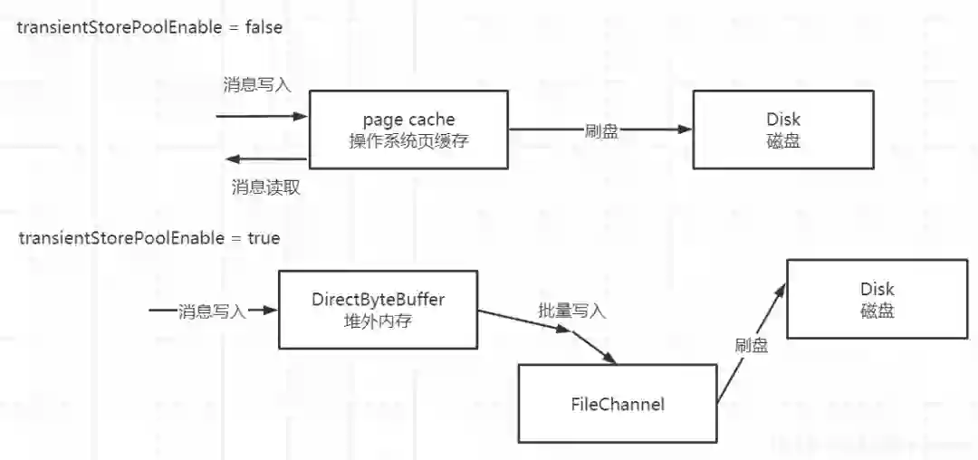 RocketMQ 的消息写入支持内存映射与 FileChannel 写入两种方式, 示例如下图所示: