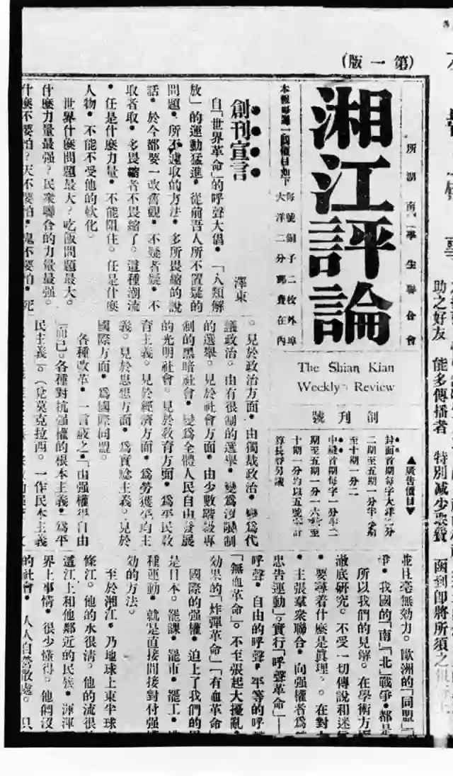 1919年,毛泽东主编的《湘江评论》发行,这份刊物歌颂十月革命,宣传马克思主义,产生了巨大影响。