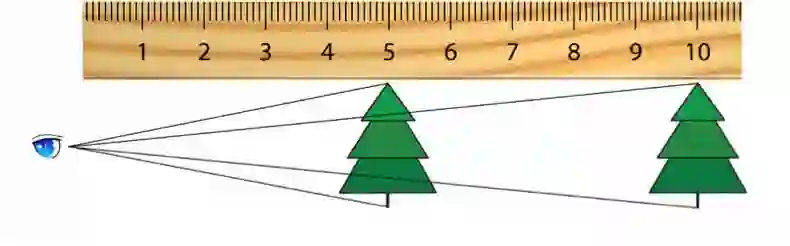图4. 平直空间下,我们看到标准尺的张角是随距离线性变化的(图源:尔欣中)