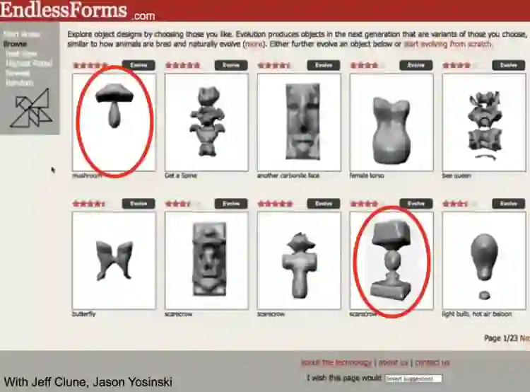 这是一个无边界形态的网站,如果你想要做设计的时候,计算机会给你一些各种各样的形态,你告诉他我喜欢什么形态,我把这两个形拼在一起,计算机就会形成新的形态。计算机能够帮你做设计,不是说计算机为人类带来价值,而是计算机来帮助你,让你发挥更好的想象力。