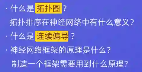 我们会基于昨天的功能,在此基础之上,学习拓扑图(topologicgraph),学习连续偏导(partialderivative),然后学习到网络如何传播,权重如何更新。