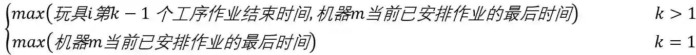 所以,玩具 i 的第 k 个工序在机器 m 上进行加工,其开始时间为: