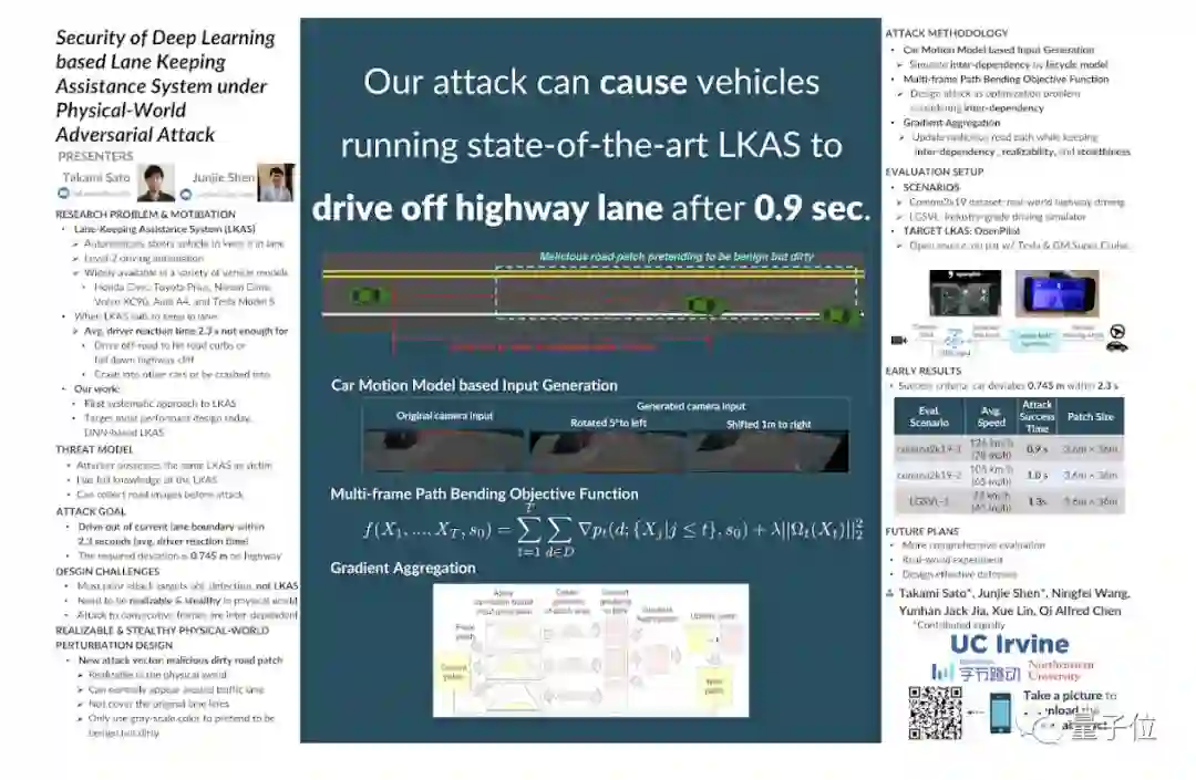 这就是研究者们展开课题的初衷,加州大学欧文分校的博士生、该研究共同一作沈骏杰说:“从这类系统的用户角度考虑,我很想知道到底目前最好的车道保持系统是否足够安全,以及如何确保它的安全。”