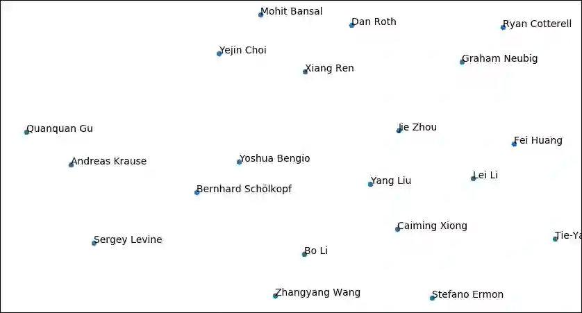 Sergey Levine 以相当大的优势创造了新的记录;Mohit Bansal 的论文数量也大幅增加,2021 年发表了 31 篇论文,与 Graham Neubig 持平;Yoshua Bengio 的论文数量在 2020 年有所减少,但现在又上升了。
