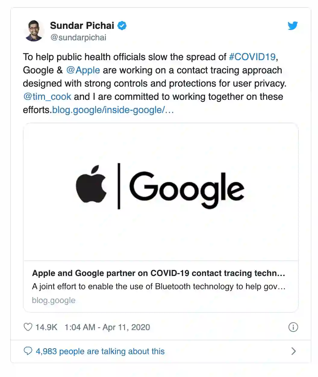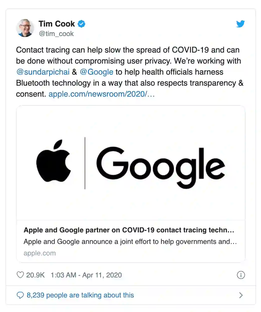 苹果和谷歌将在5月中旬推出一对iOS和Android API,并确保卫生当局的应用程序可以使用。