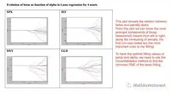 但这里是仅仅用了(X1, X2, X3, X4)作为变量,但实际上我们有4个不同的asset Y,S&P 500,10-year UST,US dollar(DXY),还有黄金gold, 所以可以将这4个Y的(X1, X2, X3, X4)都设置成共用的16个变量(X1, X2, X3, X4,…X16)。然后用这同一套Xi对这四种asset进行regression,每一种asset就都有一个Lasso model进行预测。