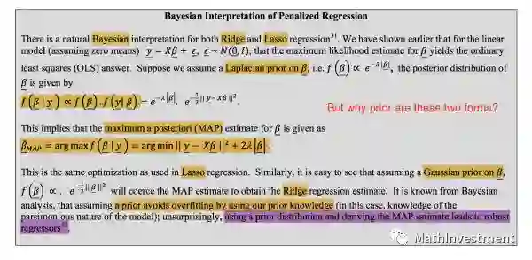 ridge还有lasso都可以由贝叶斯推导出来,只是需要改变贝叶斯里面prior的distribution的形式,ridge需要在贝叶斯里面把prior改变成laplacian,lasso需要把prior改变成gaussian。