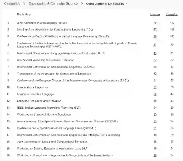 在自然(Google scholar中的分类是Computational Linguistics)领域,排名第一的是 arXiv 的“计算机与语言”板块(cs.CL)。