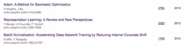 第一名是阿姆斯特丹大学、Open AI 研究员 Diederik P. Kingma 和多伦多大学的Jimmy Lei Ba2014年合作的论文:《 Adam:A Method for Stochastic Optimization》,引用次数多达 2752 次。
