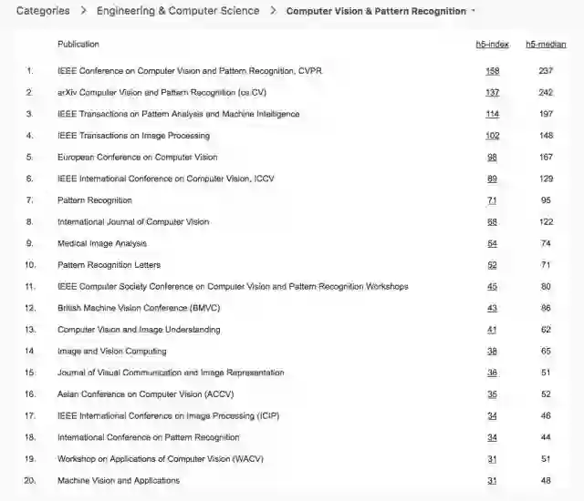 二、计算机视觉与模式识别类 TOP 20,arXiv排在第二