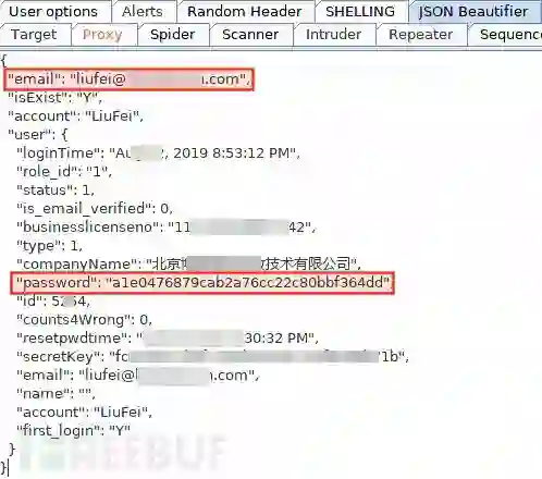 敏感信息大赠送!有邮箱,甚至有哈希密码。记下来,第二个漏洞,账号相关敏感信息泄漏。