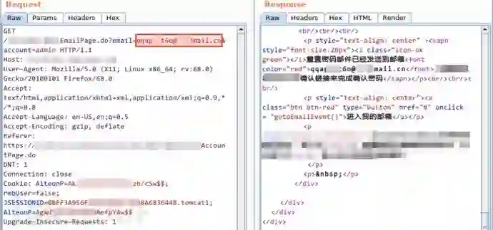 显然,参数 email 存在不安全的直接对象引用(IDOR)问题,将其替换为攻击者的邮箱,90% 的概率会收到重置邮件。(IDOR,国内外厂商对它完全是两个态度,一次给国外电商平台提交了个 IDOR 漏洞,可导致全量用户邮箱泄漏,拿了 3K,美刀,类似漏洞提交给国内厂商,可导致政企用户个人信息泄漏、可增删改用户家庭住址,奖励了 2K,还是购物卡,T_T)