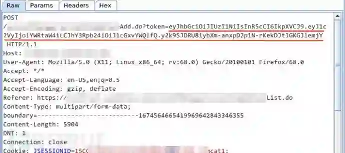 这个 token 让我觉得很突兀,通常 token 要么用作身份凭证、要么用于防 CSRF,若是前者,就不应该与同样表示身份凭证的 cookie 同时存在,若是后者,通常为 16 位或 32 位的哈希值,而非用点号分隔的三段 base64。于是,我依次将每段解码: