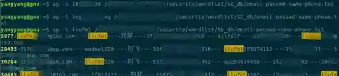 社工库。提取邮箱中的用户名,liufei 的 liufei、nana 的 18xxxxxx56、admin 的 legxxxxxxng,在社工库中查询历史密码: