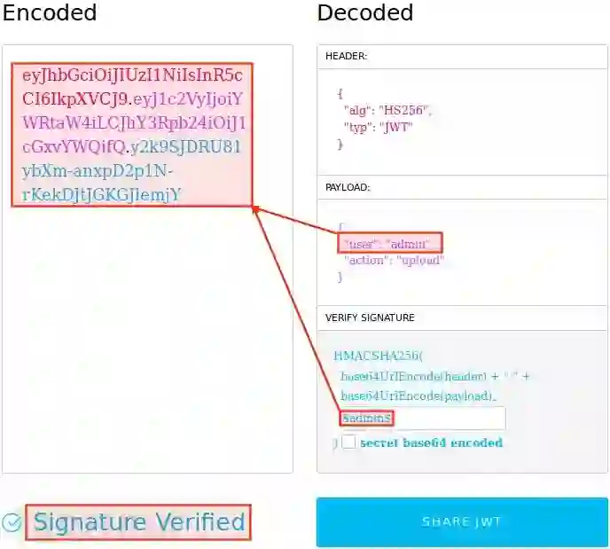 尝试用伪造成 admin 的新 JWT 上传图片: