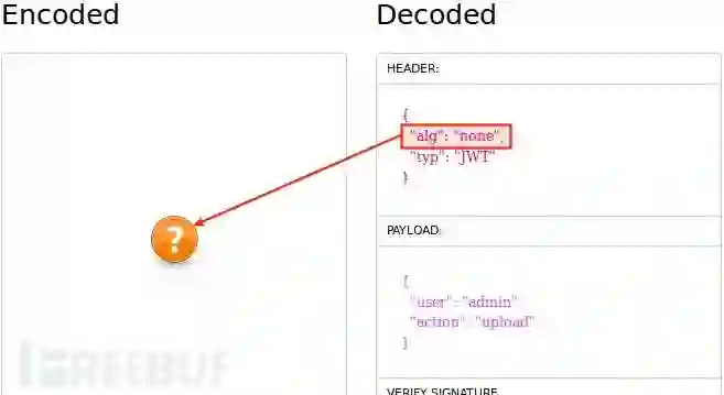 禁用哈希。JWT 第一部分含有 alg 字段,该字段指定生成签名采用哪种哈希算法,该站使用的是 HS256,可将该字段篡改为none,某些 JWT 的实现,一旦发现 alg 为 none,将不再生成哈希签名,自然不存在校验签名一说。