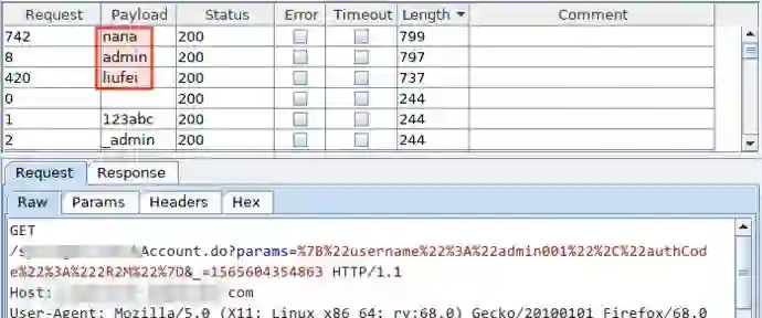 显然,用户名在该请求的 params 参数中,URL 解码可得明文: