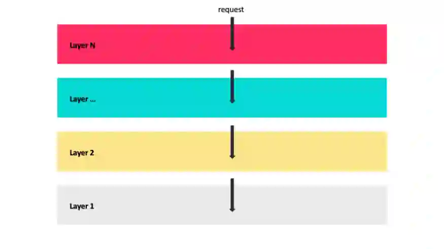 最后一个概念是,分层架构中的每一层都被标记为封闭或者开放。封闭层意味着请求从一层移到另一层,它必须通过它正下面的这一层才能达到下面这一层的再下一层。请求不能跳过任何层。
