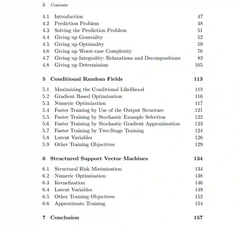 强大的统计模型可以从大量数据中有效地学习,目前正在彻底改变计算机视觉。这些模型具有丰富的内部结构,反映了特定于任务的关系和约束。本教程向读者介绍计算机视觉中最流行的结构化模型类。我们的重点是离散无向图模型,我们详细介绍了概率推理和最大后验推理的算法。我们分别讨论了最近在一般结构化模型中成功的预测技术。在本教程的第二部分中,我们将描述参数学习的方法,其中我们将经典的基于最大似然的方法与最新的基于预测的参数学习方法区分开来。我们着重介绍了增强当前模型的发展,并讨论了核化模型和潜变量模型。为了使教程具有实用性并提供进一步研究的链接,我们提供了计算机视觉文献中许多方法的成功应用实例。
